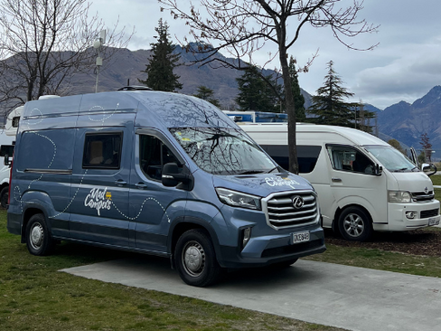 Morning started with picking up our campervans — one from Madcamperz, the other from Kitcampers. Then stocked up at Woolworths in Hornby
